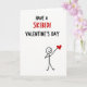 This greeting card features a white background with a simple layout that’s easy to take in. At the top, it says “HAVE A SKIBIDI VALENTINE’S DAY” in big, block-style letters. Most of the text is black, but “SKIBIDI” stands out in bright red right in the middle of the line. In the lower right area, there’s a stick figure drawn in thin black lines with two dot eyes and a wide, curved smile. The figure holds out a bright red heart, making the message feel sweet and direct. The open space around the drawing keeps all the attention on the words and the heart ❤️. It feels like a funny, friendly Valentine that still shows real care 💌🍫.