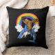 Funny Sloth Cowboy Riding Ocean Shark Rainbow Throw Pillow