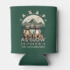 Funny can coolers for outdoor adventure enthusiasts with a cute illustration featuring a sloth hiking team resting near mountains and a quote "ASAP - as Slow as Possible" placed on a forest green background. The template makes it easy to personalize with your family name to make a keepsake for a family reunion or a souvenir for the camping trip.