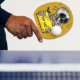 Funny smiling skull holding a sign with custom text saying "hit me"