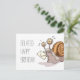 A cute snail cartoon on a belated birthday postcard. Use "Personalize this template" to tweak the "Belated Happy Birthday!" text and create a unique, customized card. A simple design featuring a funny brown snail with big eyes on stalks. The anxious snail is clutching an envelope as it arrives late in the bottom right corner.