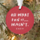 Oh what fun it is? Nope. Not this year with things like health issues, natural disasters and more. So it's more like "Oh what fun it... wasn't." This funny and snarky red and white holiday ornament is the perfect way to commemorate the year (not that you'll soon forget). With a spot on the back for a photo, this Christmas ornament makes a fun gift for family or friends. At least you can look back and laugh (hopefully!).