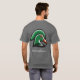 My 11 yo wore adult XL (5’7” 165#). The 8yo is small framed. She wore adult small and tied it in the back. Grandma wore adult large with long sleeve shirt underneath. Tall girl adult medium. Dark haired male adult large. Good quality dark Heather gray, Gildan brand shirt. -it was next up from basic choice and cost about $20 per shirt. Not too thick or thin. Washed and dried well, no major shrinkage. Not see-through. Can wear a bra under it fine. Screen print is just as shown and well done, front and back.