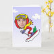 Funny cartoon snow skier going down a slope with the face cut out so you can add your own photo. Makes a great gift!