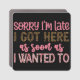 It says "Sorry I'm late I got here as soon as I wanted to". This silly magnet will be a great gift for just about anyone, especially that anti-social person you love.