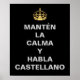 Funny Spanish text slogan based on the popular "keep calm" posters with a gold colored crown and plain black background. Visit the VINTAGE PRINTS STORE for thousands of vintage gift ideas Easily customize the color of the background or text from a range of over 200 colors.
