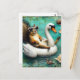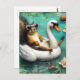 Funny Squirrel on a Floating Swan Postcard
