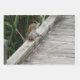 A squirrel hanging out where he knows that people bring bread to feed to the ducks from the dock.