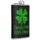 Funny St Patrick's Day drinking quote 8 oz flask with vintage green shamrock. Humorous gift idea for Irish friends and family. Lucky 4 leaf clover for St Paddy's Day party. Available in small and large size.