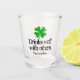Funny St Patrick's Day quote green shamrock Shot Glass gift. Fun custom drinking gift for Irish friends and family. Vintage lucky clover design with bold text. Add your own personalized name or saying. Great for pub, bar, home etc.