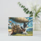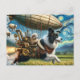 Funny Steampunk Border Collie With Sheep and Blimp Postcard