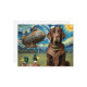 A steampunk Chocolate Lab in a Van Gogh style with some funny AI generated errors in the background