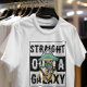 Blast off with this Straight Outta Galaxy graphic tee! Featuring a detailed illustration of an alien in an astronaut suit being beamed up by a UFO, this design is the perfect mix of hip-hop parody and sci-fi nerd culture.