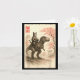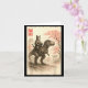 Funny Sumi-e Kawaii Cat Riding Dinosaur Japanese A Card