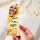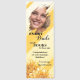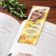 Bookmark featuring your custom photo on a sunny yellow painted striped design with flowers, with your (funny or other) texts. A lovely personal wedding gift for the bride.
