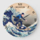 Funny Surfer Surfing On The Hokusai Great Wave Large Clock