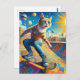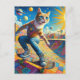 Funny Surreal Skateboarding Kitty Postcard