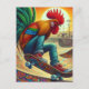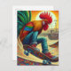 Funny Surreal Skateboarding Rooster Postcard