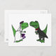 Funny T-rex Dinosaur Bride and Groom Wedding Art Postcard