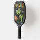 Amazing fun cute colorful green trex dinosaur playing pickleball abstract art pickleball paddle design is popular with dinosaur lovers and pickleball players.
