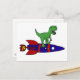 Funny T-Rex Dinosaur Riding Rocketship Cartoon Postcard