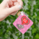The key chain is made of metal and really sturdy. The flower design is really cheerful. The logo and colors are clear and crisp!