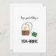 Hope your birthday is tea-rrific - funny pun birthday card with a minimalist illustration of a tea bag