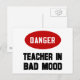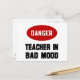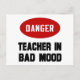 Give your students an early warning with this Danger, Teacher in Bad Mood T Shirt. This Funny Teacher T Shirt and Teacher Gifts make a great all occasion gift for your favorite teacher.