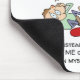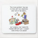Aren't most of us turned off by computers? This mouse pad depicts the daily issue: A surprised computer operator is hit by a computer with a mallet, with the text "The tech support told me to turn off the computer and turn it on again... but instead, the computer turned ME off and I cannot turn myself on again!"