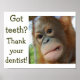 Tooth care poster to make dental patients of all ages smile.Help promote taking care of one's teeth so that everyone can be cavity free. Whether you need a poster for a health class or a dentist office, this little great ape (and that one great tooth) just might convey the importance of dental care! Border and font color may be changed prior to purchase. This poster is available in sizes ranging from portfolio to huge.