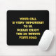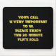 A humorous message is written in bold yellow text against a black background. It reads, "Your call is very important to us. Please enjoy this 20 minute flute solo."