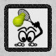 A funny tennis player graphic by artist/designer Charmaine Paulson on a patch.