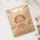 Funny Thanksgiving personalized favor bags that say GOBBLE TIL YOU WOBBLE surrounded by a turkey feather design and wishing HAPPY THANKSGIVING in modern brush script typography and all in shades of autumn colors of brown, orange and yellow gold. Personalize with your custom text or delete the sample text to leave the area blank. ASSISTANCE: For help with design modification or personalization, color change, resizing, transferring the design to another product or if you would like coordinating items, contact the designer BEFORE ORDERING via the Zazzle Chat MESSAGE tab or email makeitaboutyoustore@gmail.com.