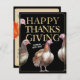 Skip the boring thanksgiving cards this year and send one that the whole family will talk about! This Happy Thanksgiving card depicts some cute hens fretting over their missing turkey friend. No need to tell them he's on your dining room table ... let's just say he got lost in the woods. Pass the cranberry sauce and have a good laugh this holiday season!