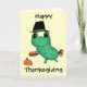 My 10 year old's, (now 17) Thanksgiving edition to her frog series. This shows her cute green frog holding a whatever while wearing a pilgrim hat and tail feathers while standing next to a pumpkin. Here it is on a cute greeting card that you can personalize.