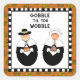 Thanksgiving gift stickers, party favor labels or envelope seals featuring the original "Gobble 'til You Wobble" Thanksgiving design featuring funny pilgrims with pie.