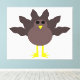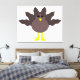 This awesome canvas print features a funny cartoon of a turkey with big black eyes, a small yellow beak and tail feathers sticking up. The feet are facing in opposite directions making the turkey look clumsy. This amusing design is ideal for Thanksgiving.