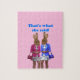 Funny cute bunny rabbit animal character girls in pretty pink floral dresses on a pink background with fun adult innuendo joke that's what she said text. Visit the LEATHER_AND_LACE STORE for matching products and more fun crazy weird character gifts, created from colaging people and animals together to create strange fun characters. this would make a great humorous womans gift for her. Thats what she said is a phrase, added to the front of another, innocent sounding statement, that creates a funny and often obscene joke.