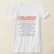 My overall review is that the T-shirt is nice, it fits true to size however the font is significantly smaller than advertised and you can't read it. The printing is unreadable and there is a strain to read it. It does not look like the advertised product. Maybe the shirt color is darker or a larger more visible font should have been used. Photos with and without flash and font is barely legible.