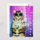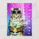 Funny photo of party cat with sunglasses holding drink glass. Unique and fun way of wishing someone happy birthday.