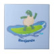 Funny tortoise wave surfing cartoon ceramic tile