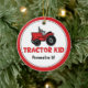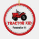 Funny Tractor Kid Red Holiday Personalize Ceramic Ornament