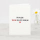 This greeting card keeps things simple with a plain white background and a big message in the center. The text reads “I’M SO GLAD I TRICKED YOU INTO LOVING ME” in a casual, handwritten brush style that feels personal and honest. Most of the words are in black, but “TRICKED” stands out in bright red and slightly thicker lettering, making it the first thing you notice. Under the line of text, there’s a single deep red heart that looks like it was drawn with the same marker style. There aren’t any other pictures or patterns, so your eyes stay on the message and the heart. The overall look is sweet and funny, like an inside joke between two people who care about each other. It’s a great pick for a partner or close friend, and the red-and-black contrast adds just enough Valentine’s Day feeling ❤️