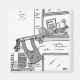 Funny Trombone Player Musician Cartoon. Musician is seen through his high-rise flat window with his trombone sticking out of the open window. He has pegged his washing to the trombone. Funny black and white cartoon illustration.