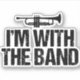 A cool marching band humor design for a band geek who plays trumpet that reads I'm With the Band in grunge font. Funny blue trumpeter sticker.