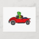 Silly funny turtle is driving a red convertible car in this fun cute original art design.