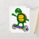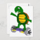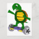 Funny green turtle is riding a hoverboard in this fun original art design.