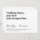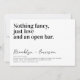Plain white envelopes are included with paper invitations and will come to fit the invitation size you select. If you don’t need the envelopes, you may choose to not receive them by selecting the dropdown below "Envelopes" and choosing "None." If you’d like to have a design on your envelopes, you can browse all of these available envelopes to find the design that complements your Funny Typography Black White Wedding Invitation.