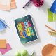 I was super excited when I got my cover in. It is attached by a magnet across the edge. I don’t think it will be very protective but it is very cute. I’m going to keep my iPad in a sleeve and use this face cover while I have it out. It folds to create a tilt for better viewing and to keep the iPad at a slight angle for typing. The colors are bright and it is fun. I’ve really enjoyed it. The personalization looks like amazing. It is the same color as the picture and is the same brightness. Well done! Very nice.