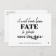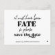 Simple black and white trendy bold typography wedding save the date postcard with a funny "it must have been fate so save the date" modern quote script.